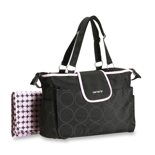 Carter's Big Dot Tote Diaper BagThis tonal dot diaper bag has a sleek outside with multiple broad pockets on the front, back and sides and a matching cell phone case for mom. On the inside, it features a plastic interior and folded changing pad. Roomy interior houses multiple pockets for holding all of your baby's necessities. Over-the-shoulder strap has a comfortable shoulder pad.