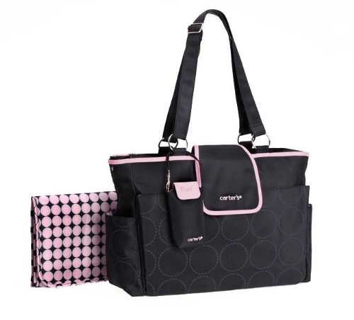 Carter's Big Dot Tote Diaper BagThis tonal dot diaper bag has a sleek outside with multiple broad pockets on the front, back and sides and a matching cell phone case for mom. On the inside, it features a plastic interior and folded changing pad. Roomy interior houses multiple pockets for holding all of your baby's necessities. Over-the-shoulder strap has a comfortable shoulder pad.